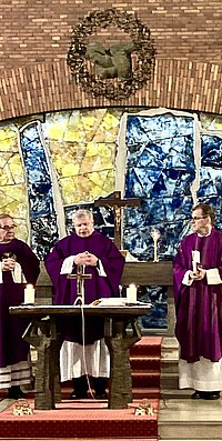 Pfarrei Sankt Hildegard Frankfurt Nie wieder Pfarrei St. Hildegard Frankfurt am Main Die leitenden Pfarrer aus der Polnischen Muttersprachlichen Gemeinde und Pfarrer Th. Schmidt 23.03.2025 Nie wieder