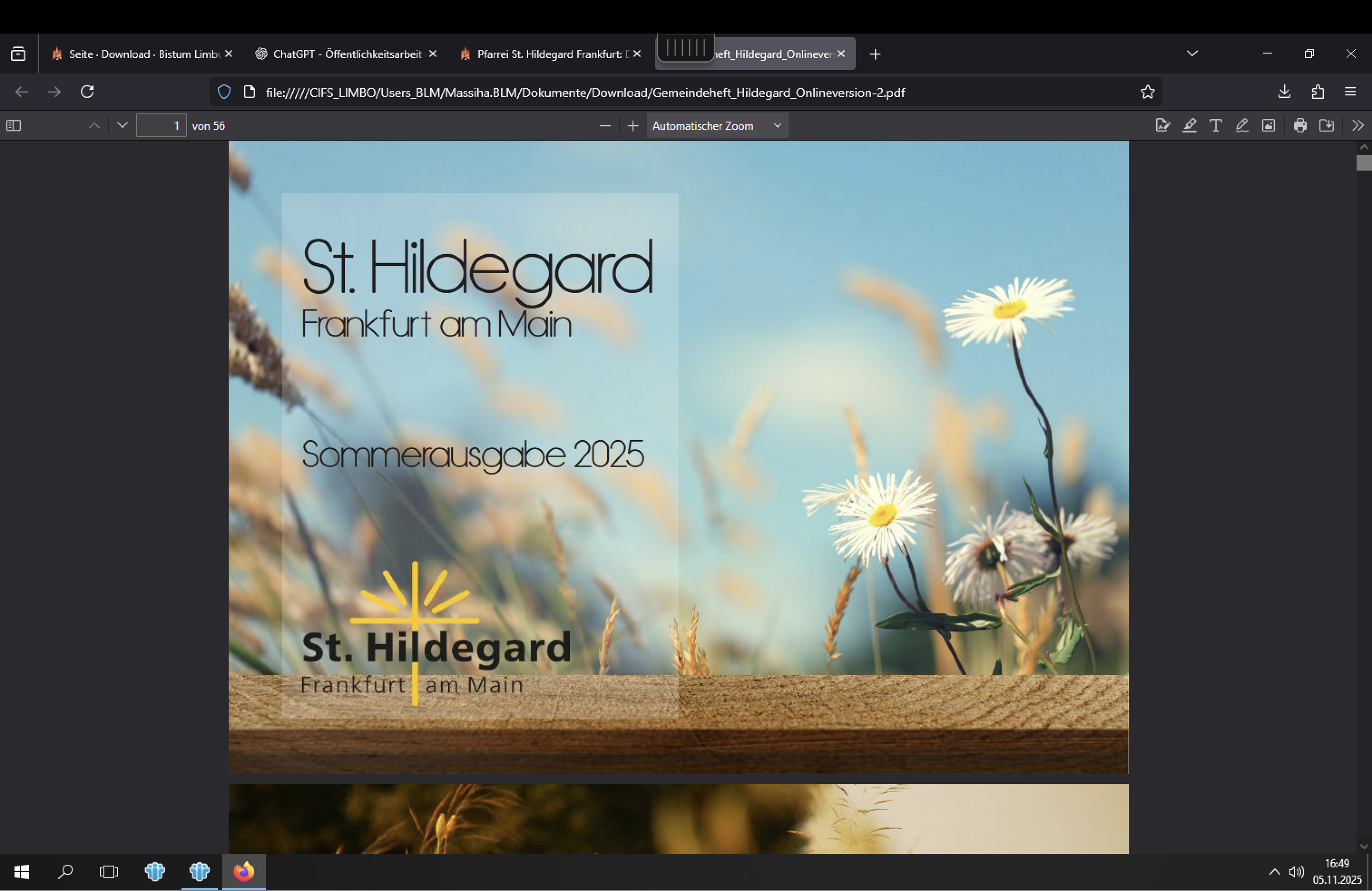 Pfarrei Sankt Hildegard Frankfurt Offenes Gemeindebüro pixabay.com 25.06.2024 Offenes Gemeindebüro Ein offenes Ohr für die Dinge, die Ihnen für unsere Gemeinde wichtig sind, Zeit zum Sprechen und die