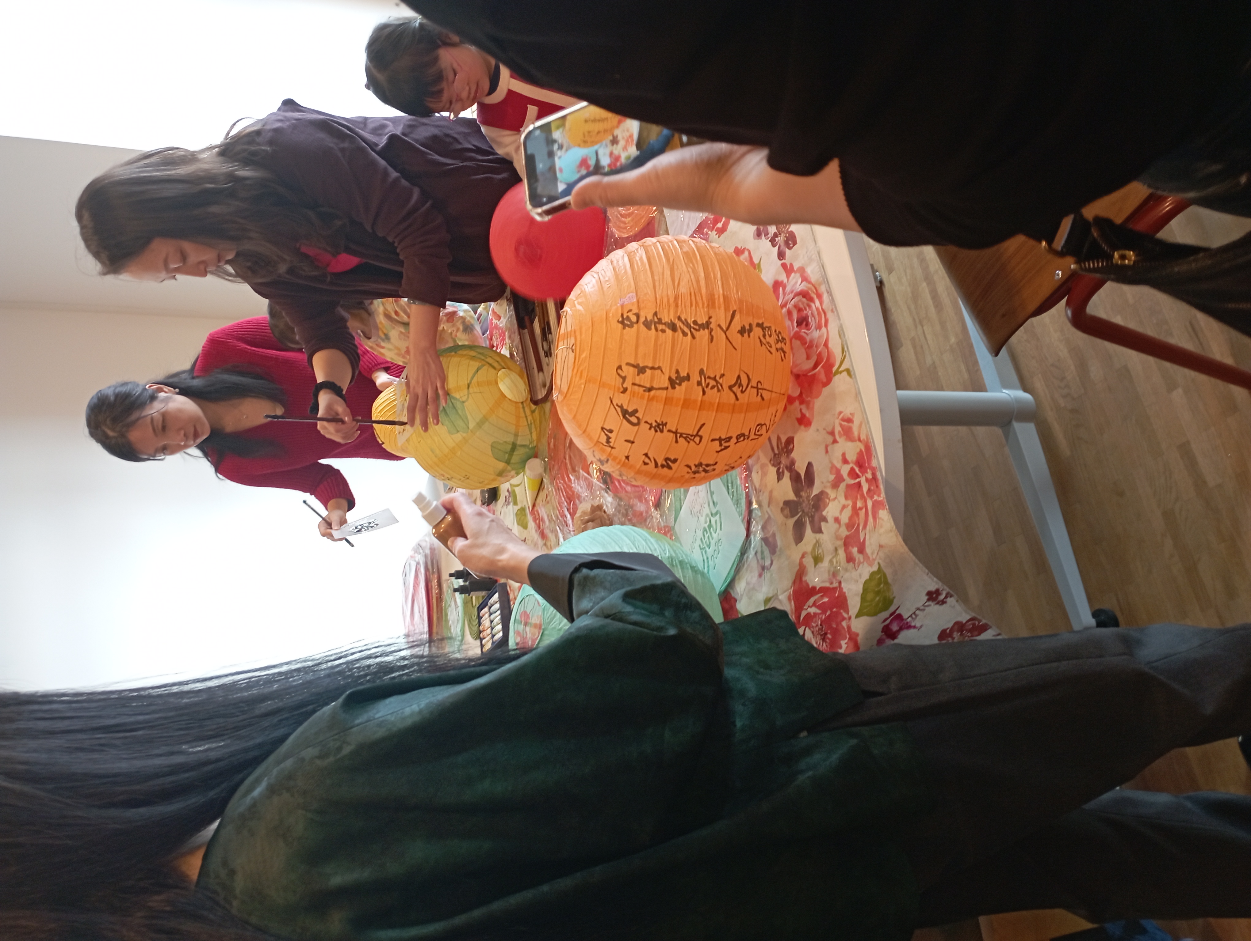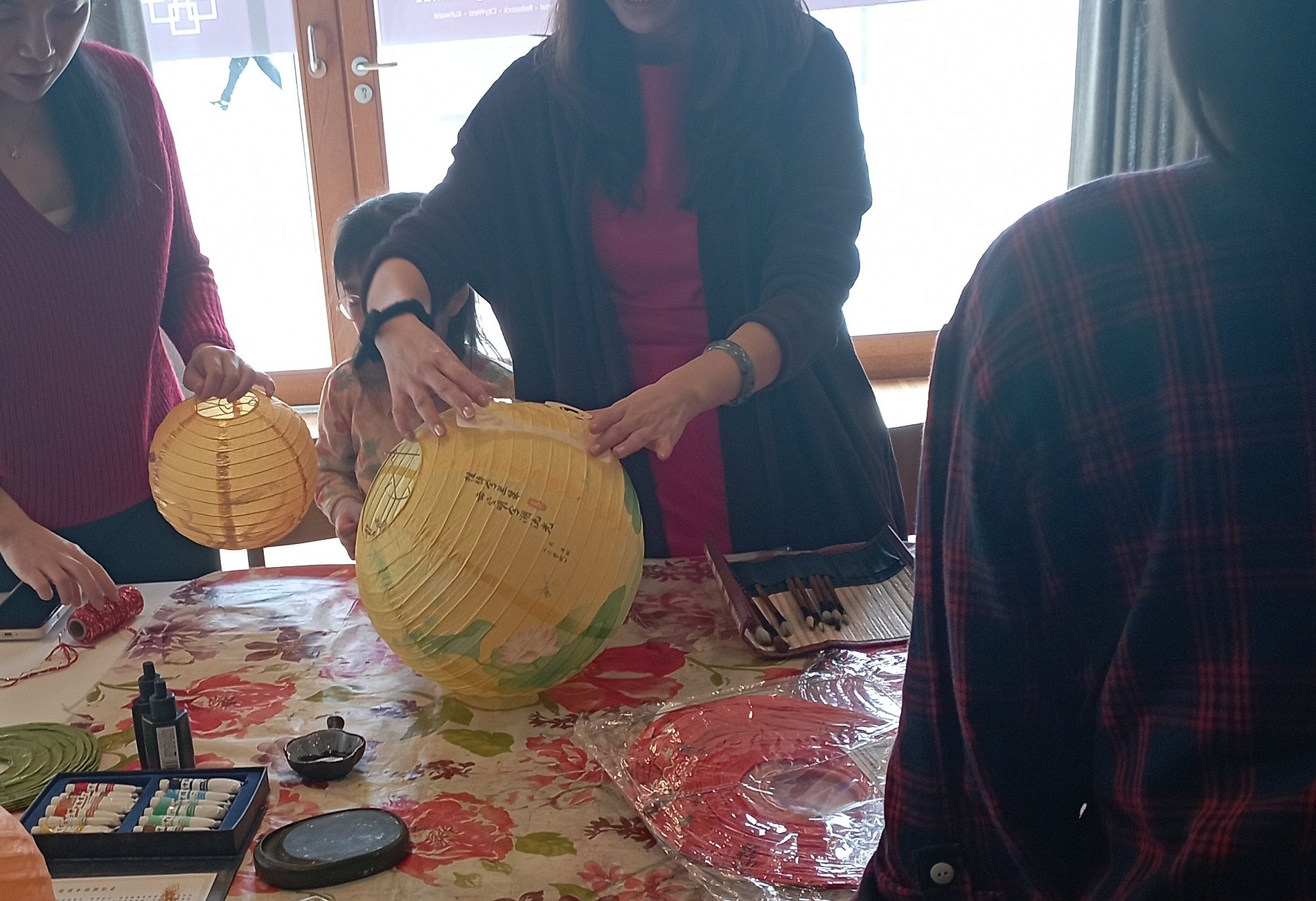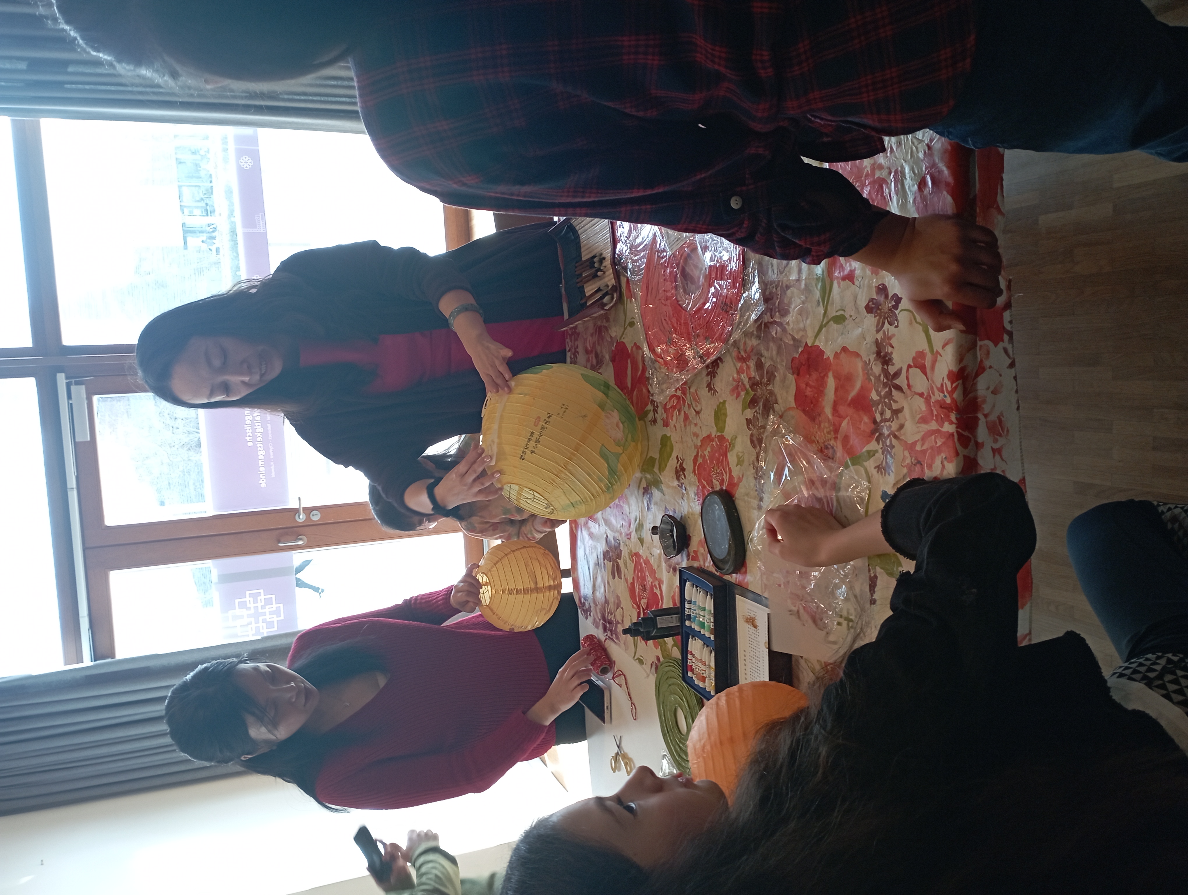 Nach dem Willkommen heißen gab es für jeden Teilnehmenden einen kleinen Zettel mit 3 Aufgaben, die an verschiedenen Stationen durchgeführt wurden: An einer Station wurden Laternen gebastelt, an einer zweiten Fensterbilder geschnitten und schließlich bereitete man gemeinsam die gefüllten Reisklöschen vor.