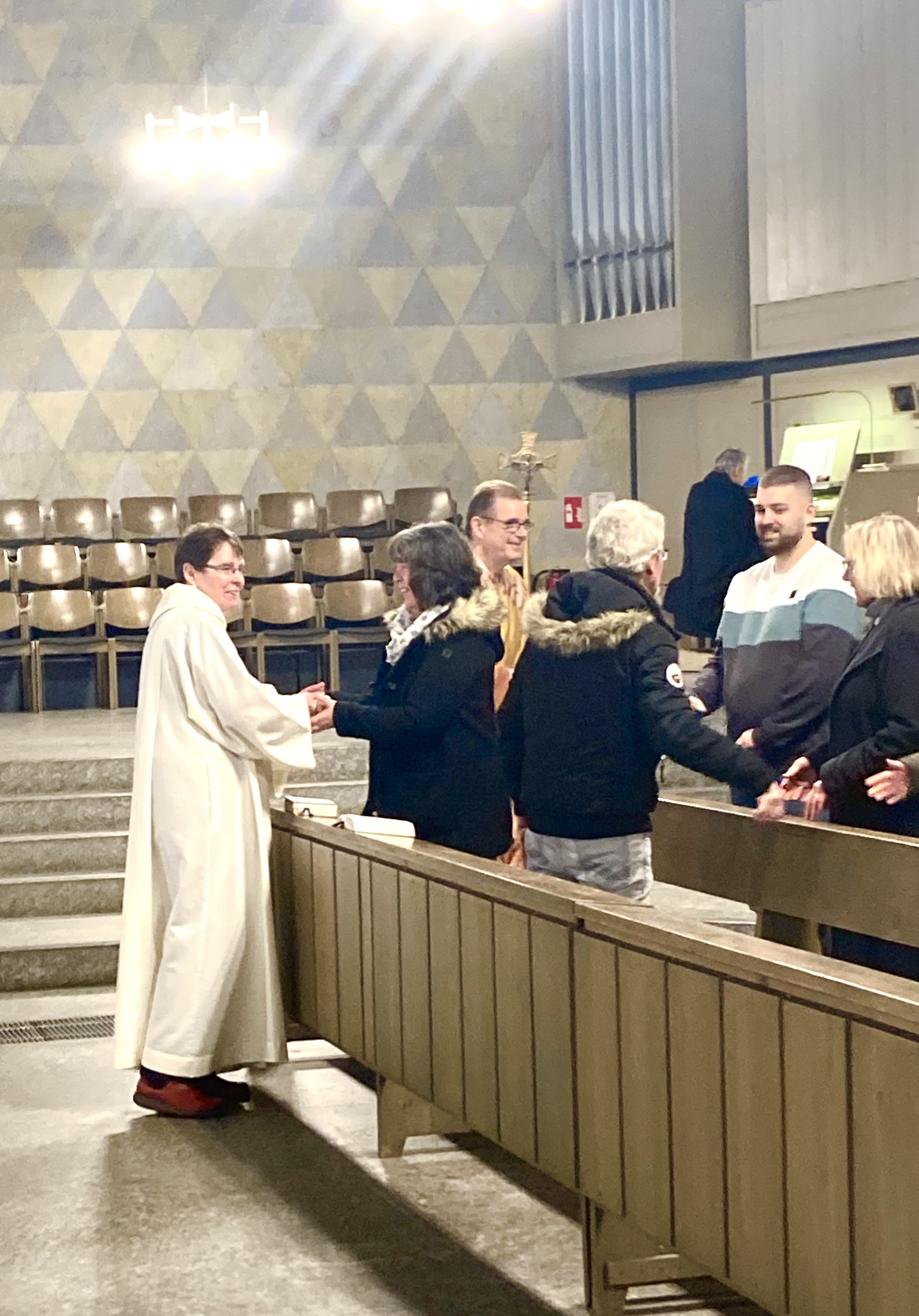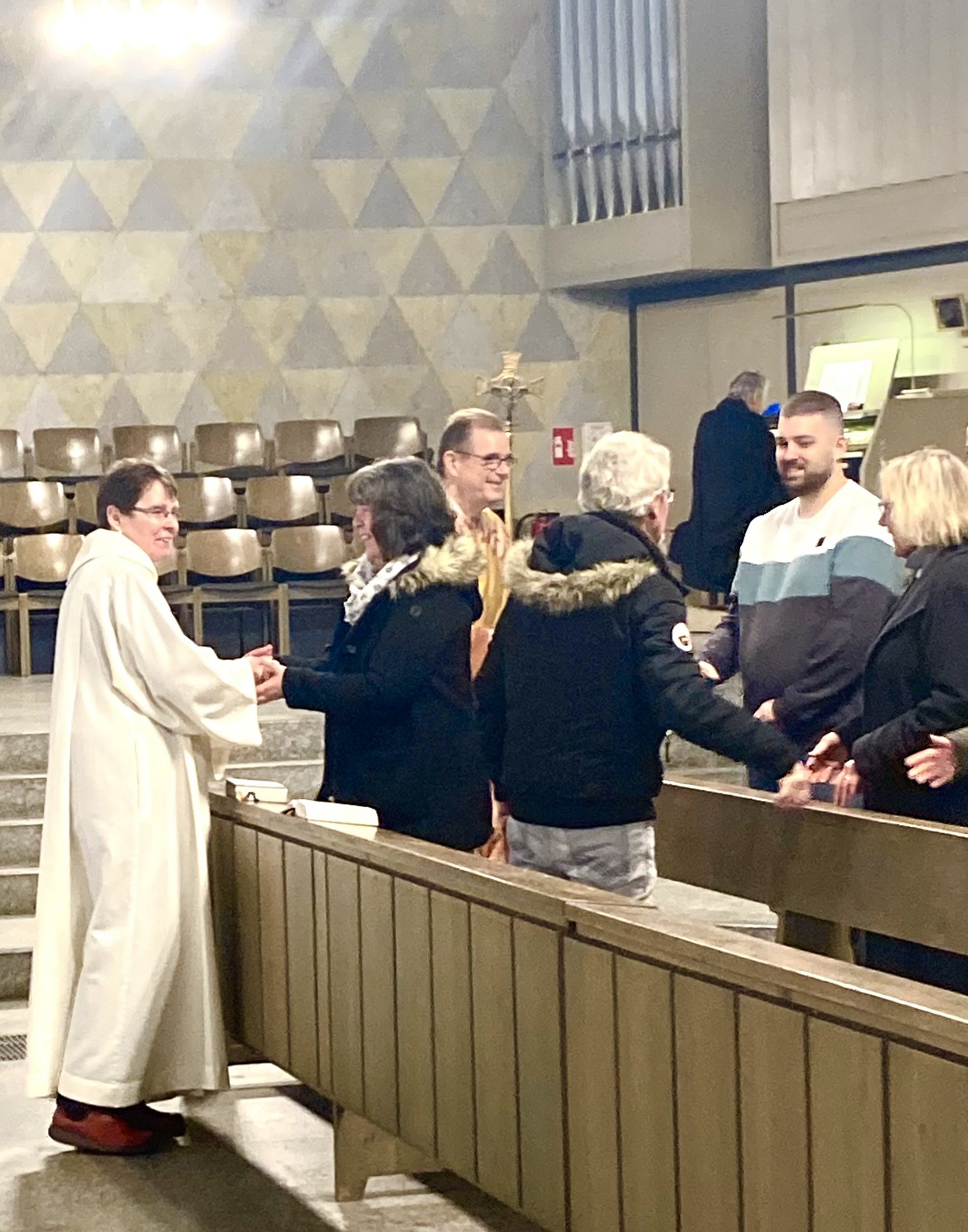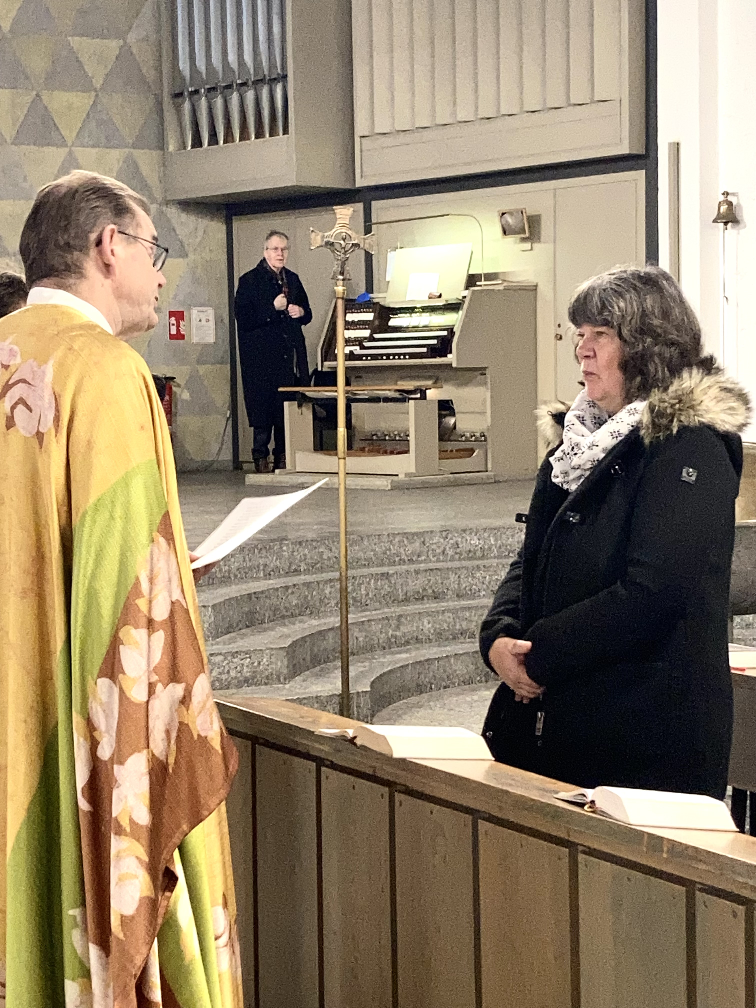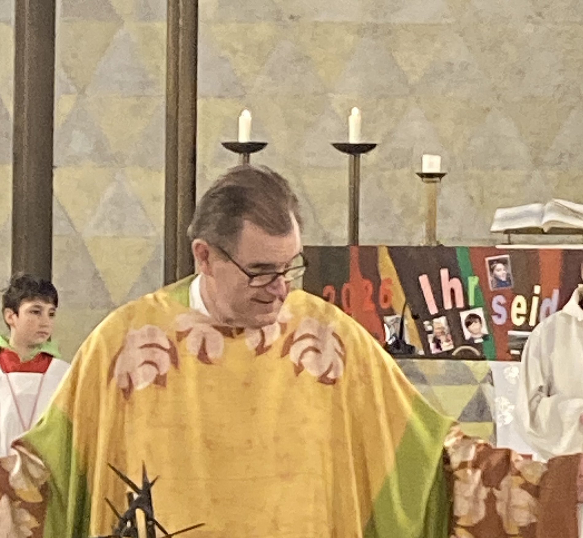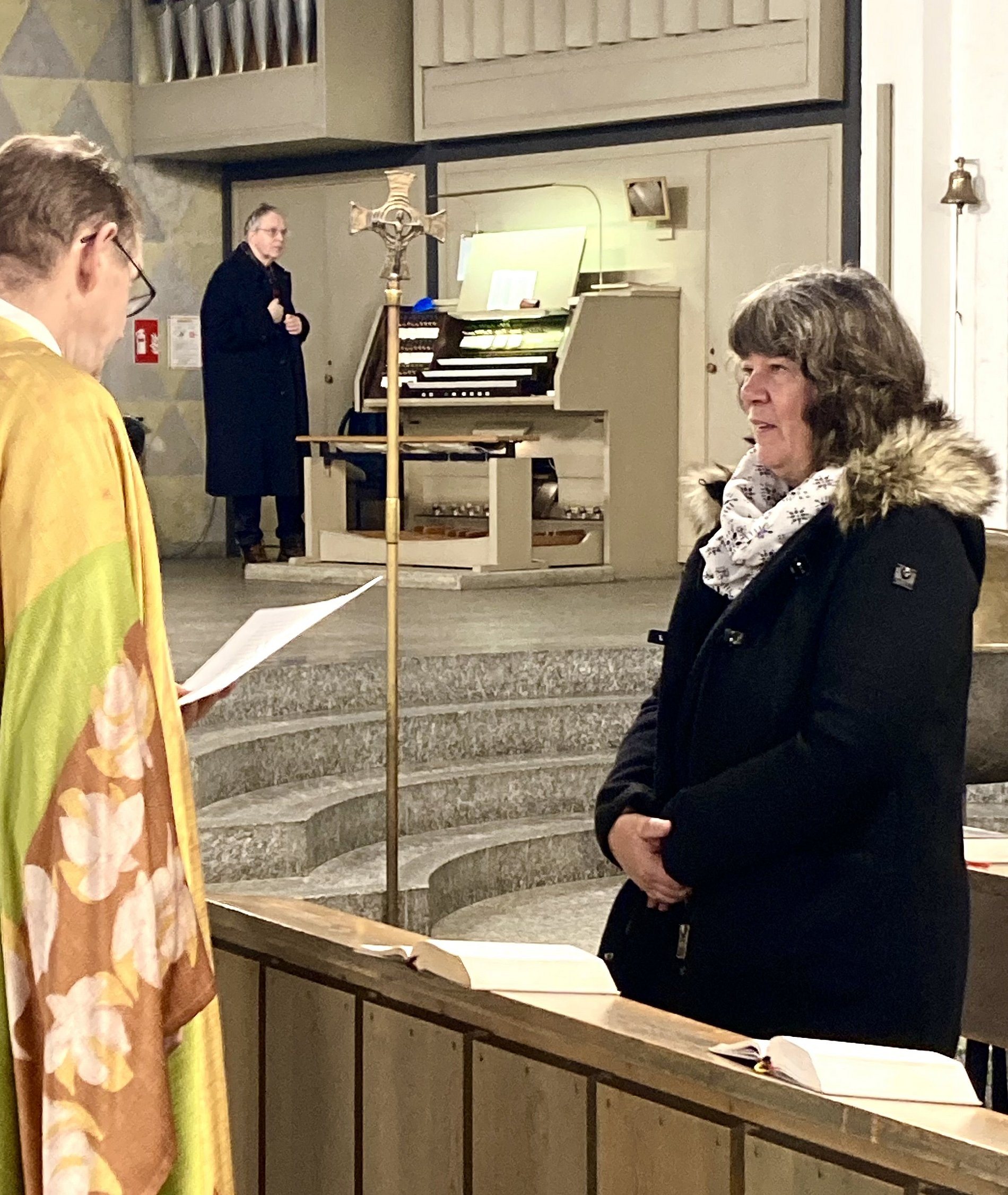 Die Verabschiedung fand im Vormittagsgottesdienst in der Ortskirche María Hilf statt. Pfarrer Thomas Schmidt feierte diesen ungewöhnlich gut besuchten Gottesdienst, und Pastoralreferentin Beate Buballa hielt die Laudatio für unsere Pfarrsekretärin. Ihre Familie nahm ebenso an diesem Abschiedsgottesdienst teil.